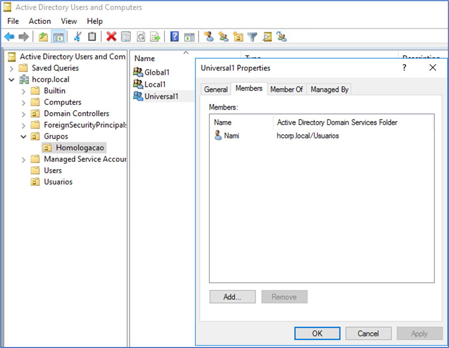 O usuário Nami foi adicionado ao grupo universal Universal1