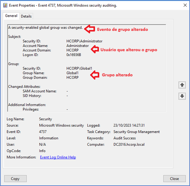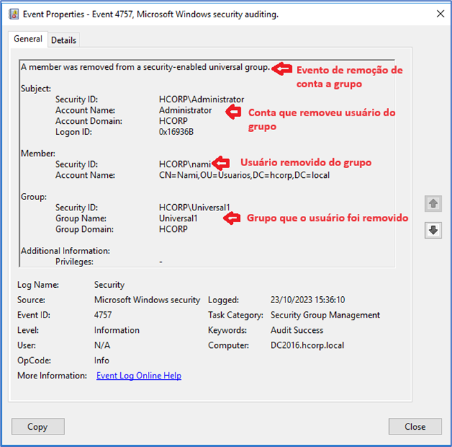Concluímos que através desses procedimentos é possível identificar um usuário que adicionou ou removeu um usuário de um grupo no Active Directory com sucesso.