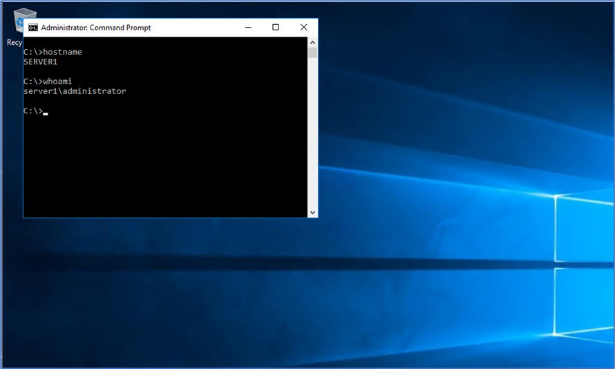 O teste será realizado em um servidor de nome SERVER1, conforme imagem abaixo o servidor não está domínio e logado com o usuário administrator.