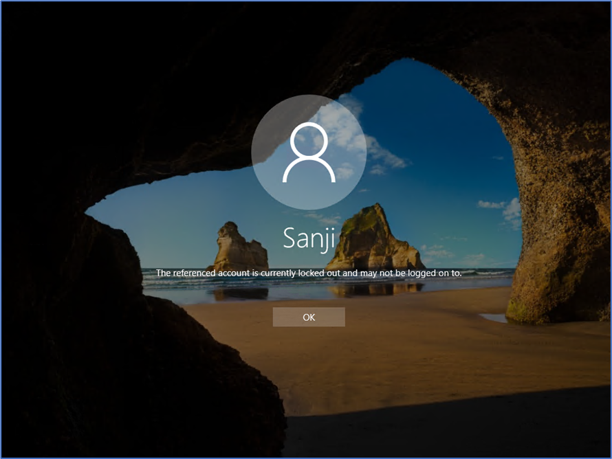 - Account lockout threshold: Essa configuração de segurança determina o número de tentativas de logon com falha permitidas antes que uma conta de usuário seja bloqueada. Por exemplo, se um invasor inserir uma senha errada pela primeira vez, o atributo badPwdCount do objeto de usuário será definido como 1. Quando o invasor continuar a inserir senhas erradas, o badPwdCount será incrementado em 1 até atingir o valor limite de bloqueio de conta, momento em que a conta é bloqueada. Uma conta bloqueada não pode ser usada para fazer logon até que o período de bloqueio da conta expire ou um administrador desbloqueie explicitamente a conta;