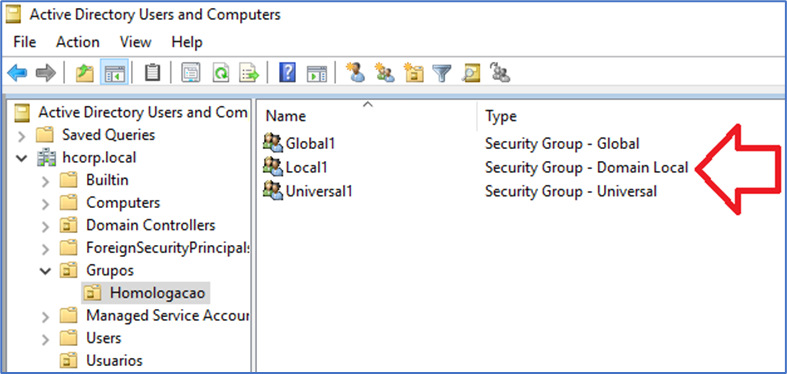 Cada grupo tem um escopo que identifica até que ponto o grupo é aplicado à árvore de domínio ou à floresta. O escopo de um grupo define o local em que as permissões de rede podem ser concedidas para o grupo. O Active Directory define os três seguintes escopos de grupo: Universal, Global e Local de Domínio. Para mais informações sobre escopo de grupos consulte o KB da Microsoft https://learn.microsoft.com/pt-br/windows-server/identity/ad-ds/manage/understand-security-groups