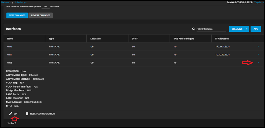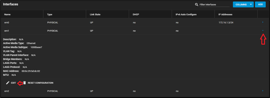 Repita o processo para a segunda interface de rede, expandindo e clicando em EDIT.