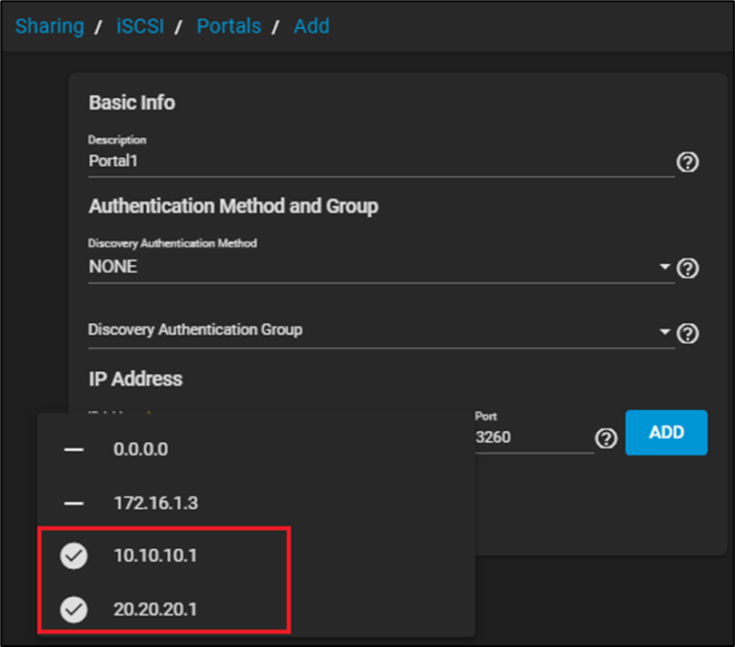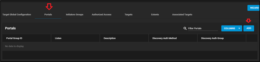 Em Portals configuramos os IPs que o serviço irá responder, clique em ADD.