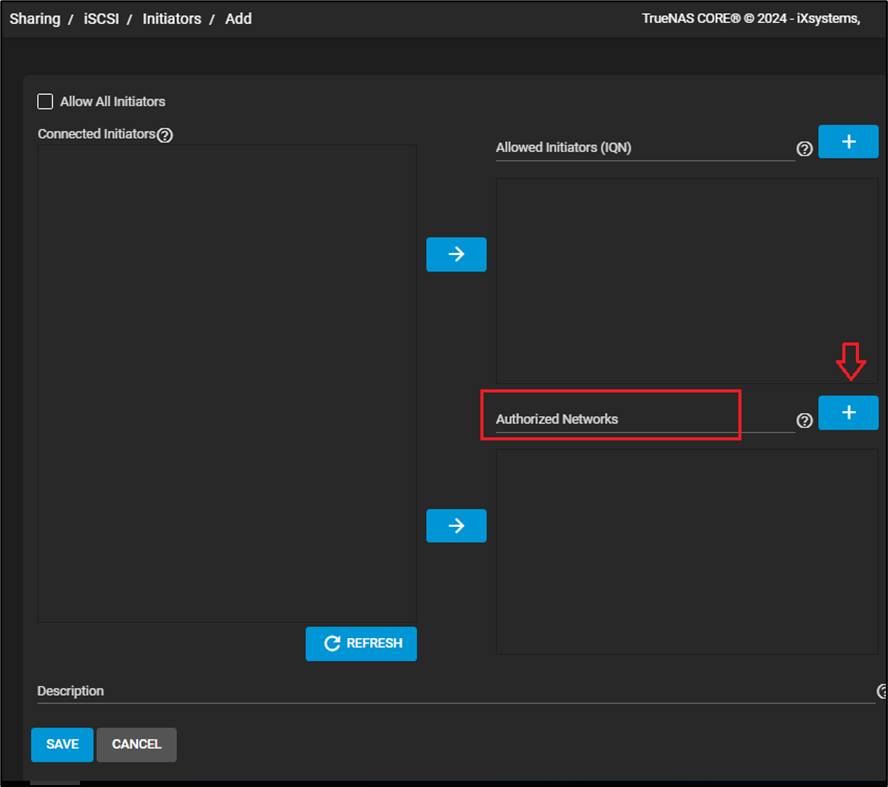 Após informar os IPs ou redes em Authorized Networks, configure uma descrição em Description e clique em SAVE.