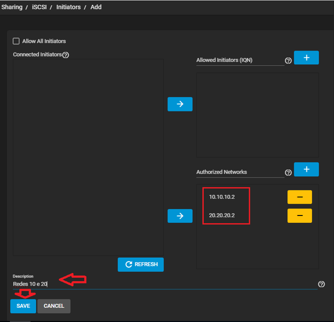 Configuração TrueNAS/FreeNAS para storage iSCSI