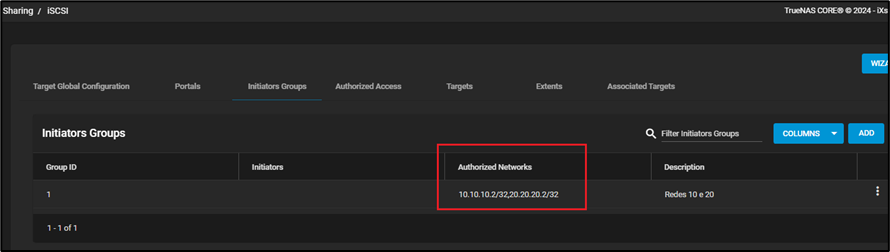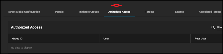 Clique na aba Authorized Access caso queira configurar a autenticação para acesso aos volumes. Essa é uma configuração muito particular da empresa, “geralmente” isso não é utilizado, pois as redes iSCSI são segregadas (quando montadas corretamente) e colocar uma autenticação seria um processamento amais no acesso/leitura/escrita, etc. É algo que não impacta tanto na performance, mas já obtive algumas experiências “estranhas” com erro de senha do nada, perda de acesso aos volumes então eu não curto muito utilizar essa autenticação. Porém sempre me certifico de manter esse ambiente 100% isolado. E leve em conta o que o time de segurança da informação de sua empresa recomenda também, pois de fato a segurança é muito mais importante.