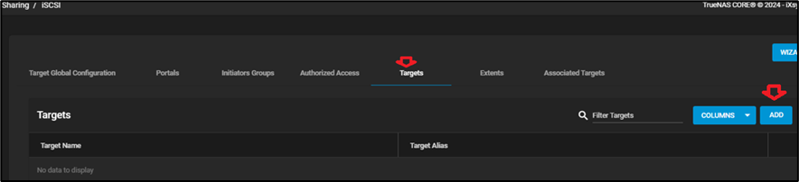 Em nosso caso não realizaremos nenhuma configuração, clique na aba Targets e clique em ADD.