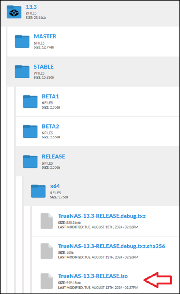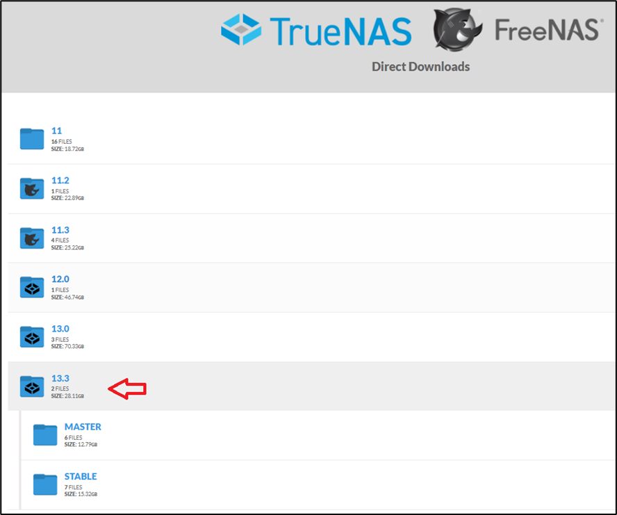 Realizar acesso ao site https://download.freenas.org/ e realize o download da última versão disponível, no meu caso baixei a versão 13.3.