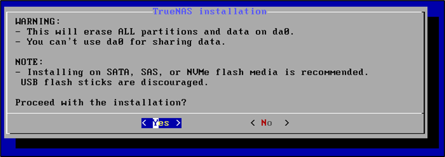 Será gerado um aviso que o disco será formatado, clique em Yes.
