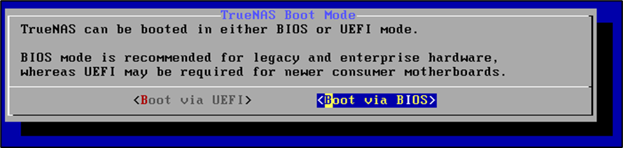 Selecione a forma de boot desejada e clique em Enter. Se seu hardware for antigo utilize BIOS, se for mais novo utilize UEFI.