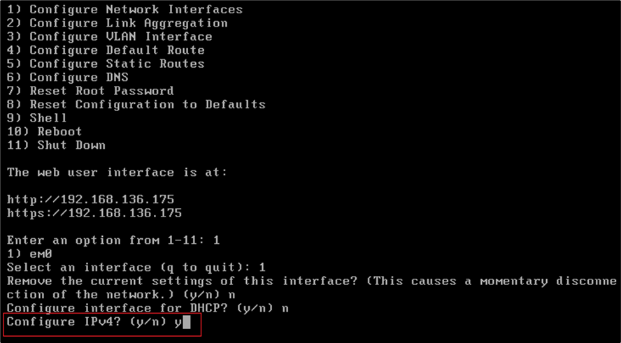 Realizaremos as configurações de IPv4, selecione y e clique em Enter.
