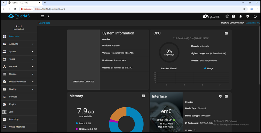 Com isso finalizamos o procedimento de instalação e configuração básico do TueNAS/FreeNAS.