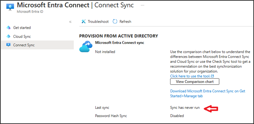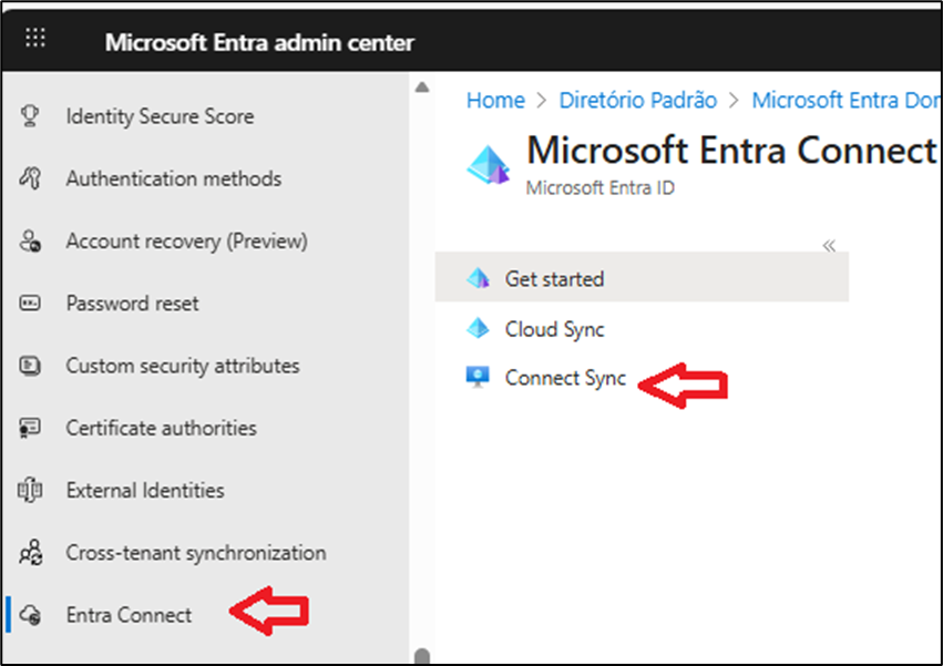 Volte ao portal Entra admin center, na seção Entra Connect clique em Connect Sync.