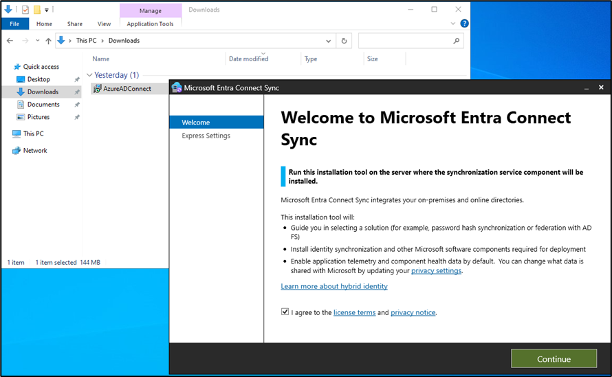 Realizar a instalação e configuração da ferramenta de sincronismo Microsoft Entra Connect Sync que sincroniza objetos do Active Directory com a nuvem da Microsoft/Azure. O Microsoft Entra Connect Sync é uma solução local tradicional (antigo AD Connect).