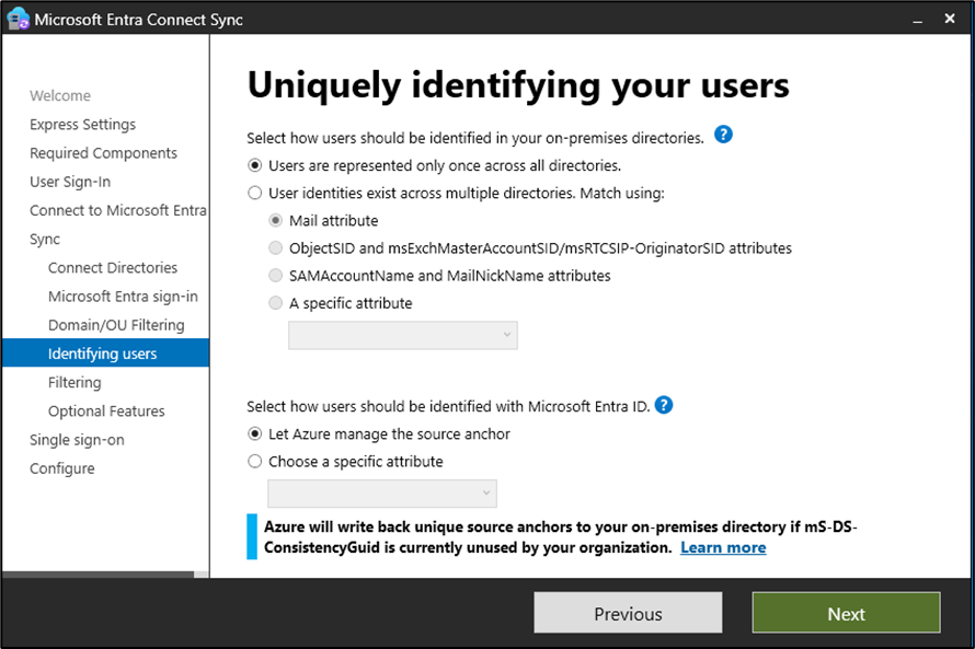 Na janela Identify users é possível configurar como os usuários deverão ser identificados no diretório local, vamos manter o padrão, clique em Next.