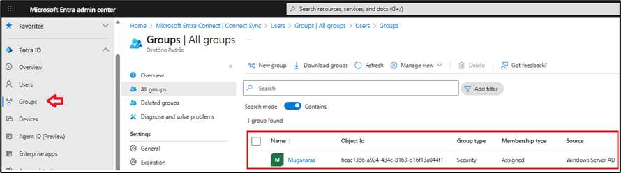 Clique em Groups e verifique que os grupos locais também foram sincronizados.