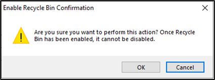 Porém caso a opção Enable Recycle Bin … esteja na cor preto “habilitável” é porque não está habilitado.