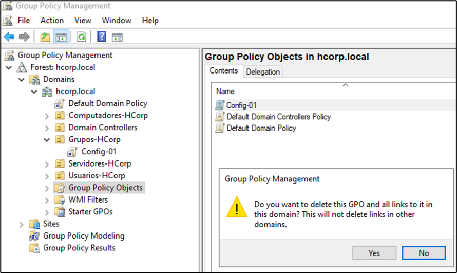Excluindo a GPO