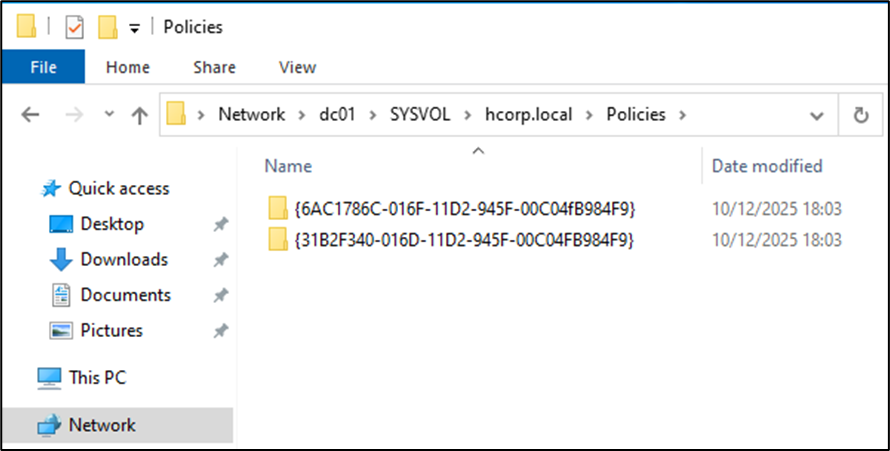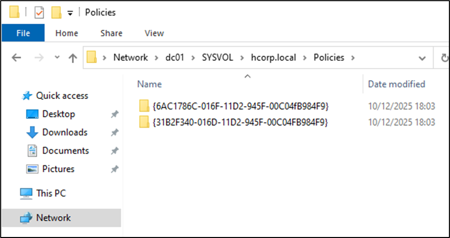 - GPT (Group Policy Template): Arquivos no SYSVOL \\domain\SYSVOL\…\Policies\{GUID}