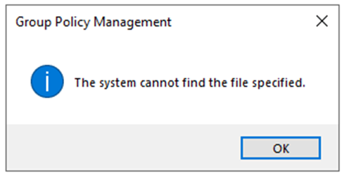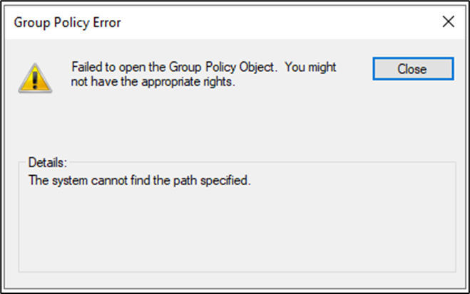 Ao clicar na GPO restaurada uma série de erros e avisos são exibidos.